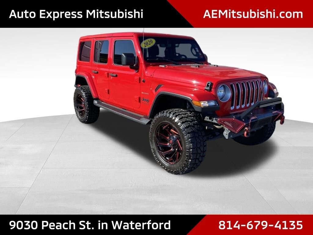 REMOTE START, HEATED SEATS, NAVIGATION SYSTEM, LEATHER SEATS, LIFTED, 20 INCH FUEL WHEELS ON 35'S, FOX SHOCKS. Firecracker Red Clearcoat 2020 Jeep Wrangler Unlimited Sahara 4WD 8-Speed Automatic 2.0L I4 DOHC